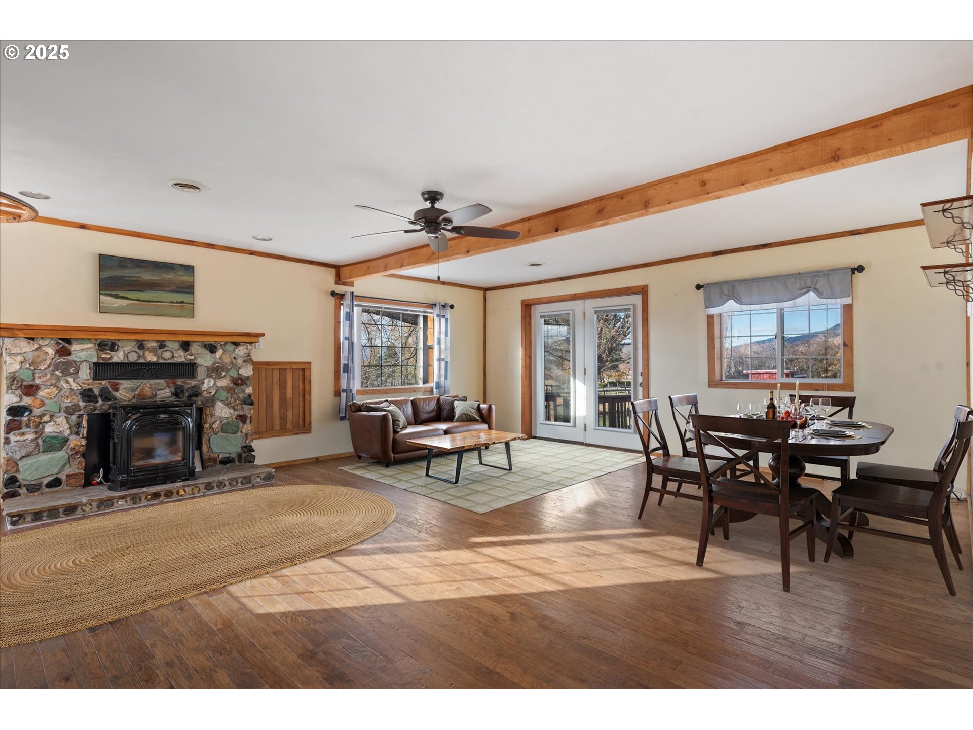 Set on 2.44 acres in Cove, this home offers a comfortable, welcoming layout with plenty of space to live, work, and enjoy the outdoors. The living area feels warm and inviting, and the primary bedroom opens directly onto the deck--an ideal spot to take in the mountain and valley views. Four outbuildings provide a wide range of possibilities, whether you're planning an additional dwelling unit, a home office, more workshop space, or areas for livestock. A shop/RV building with a 12' roll-up door, a garage with an attached workshop, and extra unfinished space give you the flexibility to tailor the property to your needs. Caldwell Ditch water rights support irrigation, and a spring-fed pond adds to the peaceful setting. The spacious Trex deck is perfect for enjoying Cove's beautiful sunsets and for relaxing or entertaining outdoors. Country living with room to grow--just minutes from schools, restaurants, and local amenities.